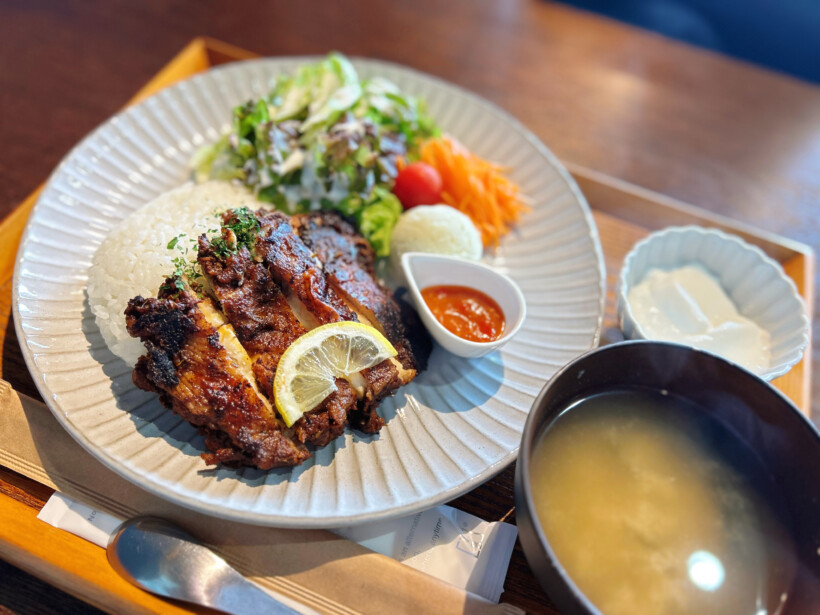 - 写真は1番人気のジャークチキンプレートです。服屋さん併設の多国籍料理が頂けるカフェです。